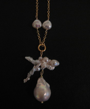 So I had to rethink this.  I figured let the beauty of each separate pearl stand out.  I picked out the most unusual pearls on the strand to use as pendants.  Some even have tiny round pearl growths on them.
