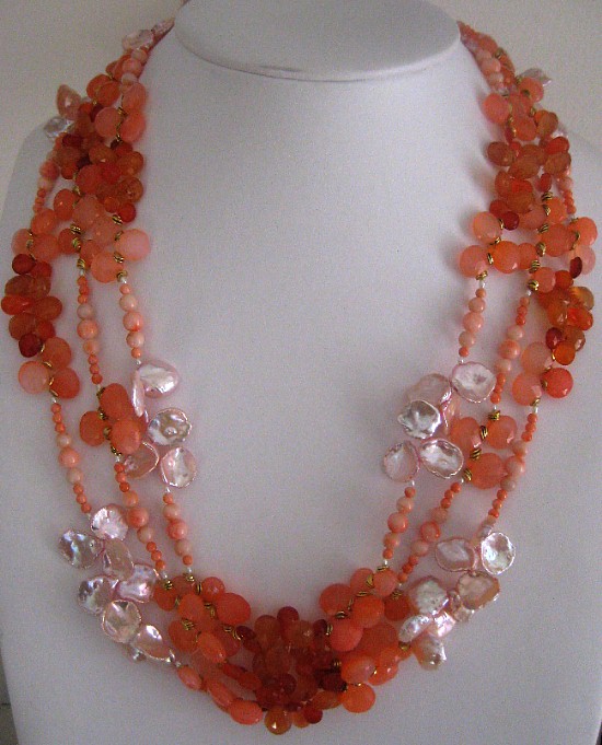8 thoughts on “Orange Carnelian Chalcedony and Coral Neckalce