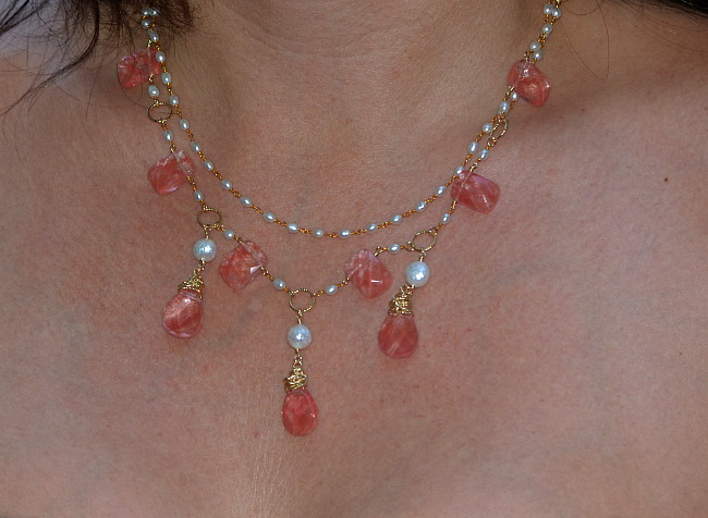 The drops have “Faceted” pearls that you can really see in the last photo. These are fresh water and I like the texture of the surface or I wouldnt use them.